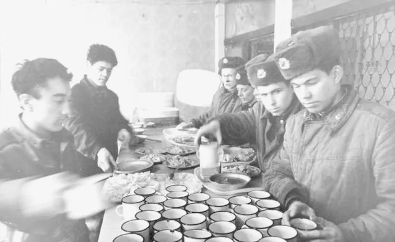 Мне как-то довелось избежать чувства голода в первые дни службы, мама, наверное, пирожками перекормила), да и гоняли нас не сказать что бы сильно. Читаешь ваши комментарии и не знаешь, то ли радоваться, что не довелось, или сожалеть, что не довелось испытать... Готовили у нас, наверное, нормально по меркам того времени и сало варенное присутствовало на столе. Но было оно на вид нормальным, я уже упоминал, как мы с каптером Ковальчуком ходили на свинарник наблюдать процесс. Как раз при помощи паяльной лампы обрабатывали тушу. Так что на столе куски вареного сала выглядели привычно. Вот вчера Владимирович написал о засолке сала, в натуре, почему так не делали? На соленое желающих было бы побольше, чем на вареное. Или это связано с санитарными нормами? Может кто растолкует? А чтобы закончить тему жратвы, я публикую историю вадима яковлева(так он подписывается) о первых днях службы и о том, что когда хочется жрать, то никакие запреты не могут остановить. Да и нет в исламе жесткого запрет