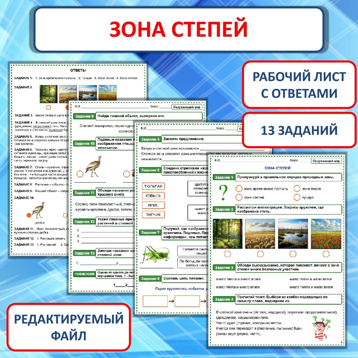 Рабочий лист "Зона степей" к уроку окружающего мира в 4 классе