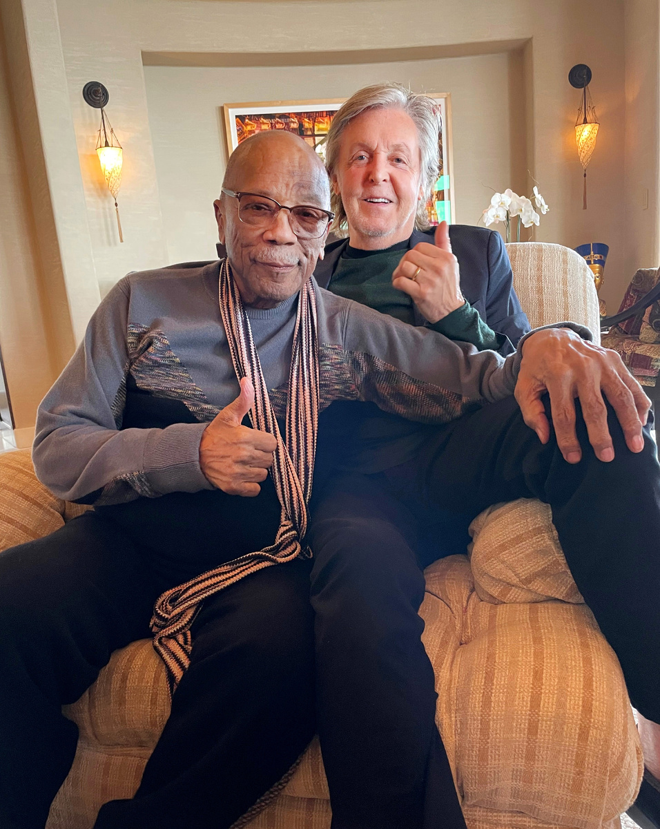 Куинси Дилайт Джонс-мл. (Quincy Delight Jones, Jr.) (14 марта 1933 г. - 3 ноября 2024 г.) - американский музыкант, композитор, аранжировщик и музыкальный продюсер, обладатель множества наград, включая Грэмми и Оскар. Продюсер Майкла Джексона, старинный друг семьи Пола МакКартни. “Ушёл из жизни дорогой Куинси Джонс, оставив в печали всех тех, кто его знал. Он был в высшей степени талантлив, и для меня было честью знать его на протяжении долгих лет. Он дружил с Джорджем Мартином, продюсером Битлз, и они вдвоём спродюсировали много очень хорошей музыки. В глазах Куинси - или ‘Куинса’, или ‘Кью’, как его называли, - блестел огонёк, а его очень позитивный, полный любви дух влиял на всех, кто его знал. Его работа с Майклом Джексоном, конечно же, легендарна, но у него было так много и других музыкальных достижений. Я постоянно вспоминаю наши общие личные поседелки, и я никогда не перестану благодарить Нэнси за то, что всегда, когда мы были в Лос-Анджелесе, она устраивала встречи с ним. Эти в