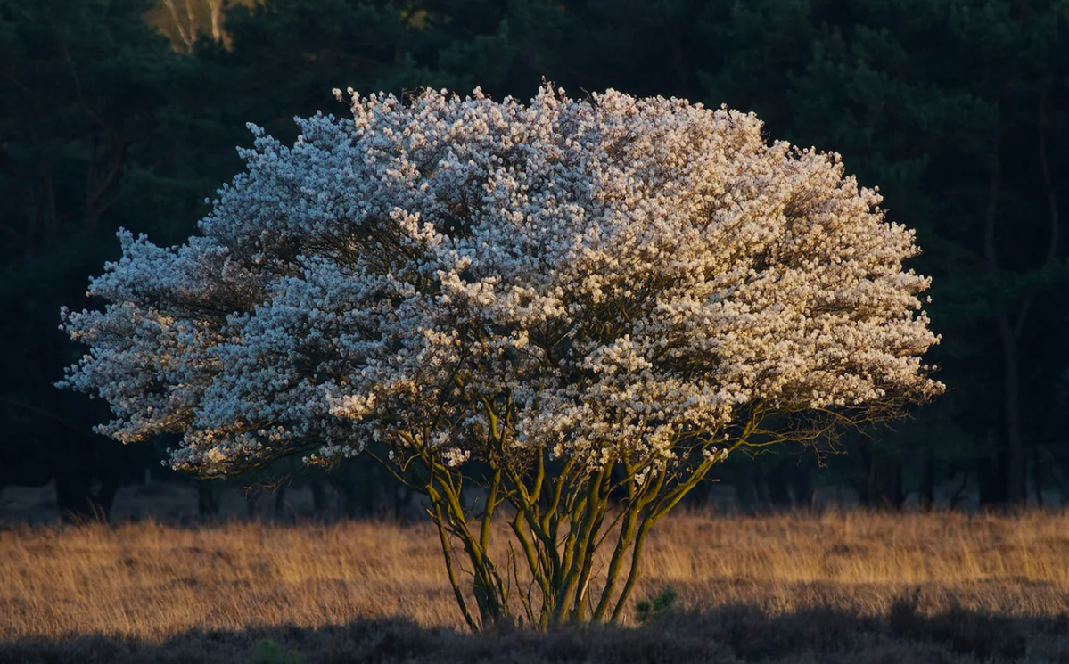 Цветение ирги Ламарка начинается ранней весной, обычно в апреле или мае. В это время куст покрывается обилием мелких белых цветков, собранных в изящные кистевидные соцветия, которые придают растению неповторимое очарование. Цветки не только украшают растение, но и привлекают насекомых-опылителей, способствуя экологическому балансу сада.