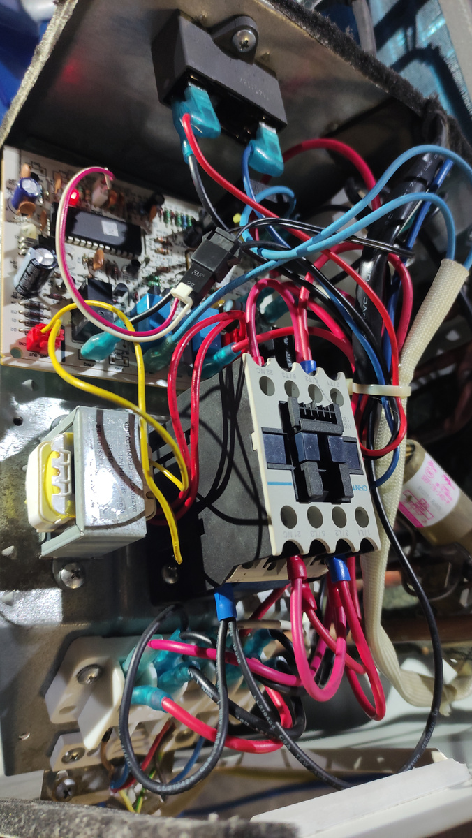 Во внешнем блоке сплит системы LESSAR LU/LS-H24KEA2 установлен данный контактор, который управляется силовой платой и включает мощный компрессор кондиционера. После долгого простоя, при запуске кондиционера из внешнего блока исходил дребезжащий гул, который заглушал шум вентилятора. Источником гула являлся контактор компрессора. Как выяснилось, корпус контактора легко разбирается, достаточно выкрутить два черных шурупа. Верхняя часть с контактной группой я разбирать не стал, явных защелок не обнаружил, наверное пластина приклеена. Характерный гул издавал подвижный сердечник, который не плотно прижимался к неподвижной части. Части сердечника имели небольшой налет ржавчины, это и было препятствием к нормальному сжатию частей сердечника при подаче напряжения на обмотку контактора. Все части были очищены латунной кордщеткой и протерты обезжиривателем. После сборки, контактор уверенно срабатывал, не издавая никаких звуков. Не забудьте поставить лайк за труд и подписаться на канал, спасибо
