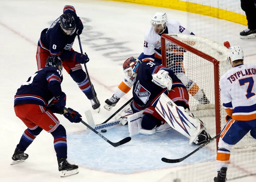 Российский голкипер «Нью-Йорк Рейнджерс» Игорь Шестеркин помог своей команде выиграть принципиальную схватку против «Нью-Йорк Айлендерс» со счетом 5:2. 31-й номер парировал 35 из 37 бросков в нью-йоркском дерби, прошедшем на домашней арене «синерубашечников» Madison Square Garden. «Спросили защитника «рейнджеров» Зака Джонса о том, насколько он уверен в себе, зная, что за его спиной Игорь: «Заплатите этому человеку (смеется). Он лучший вратарь – без сомнений. Никто не может сравниться с Игорем Шестеркиным», – написал журналист Джонни Лазарус. Уроженец Москвы был признан третьей звездой матча. «116 сейвов за три последних матча. Игорь Шестеркин абсолютно бесподобен», – отметил аккаунт спортивного телеканала MSG в социальной сети X. Поклонники «Рейнджерс» дали свою оценку игре Шестеркина с «островитянами»: @KlatsNYR:- Если Игорь уйдет, руководству придется перекроить состав. Все строится вокруг этого топ-вратаря. @JustSkate23:- Многие болельщики «Рейнджерс» писали о том, что Игорь – свин