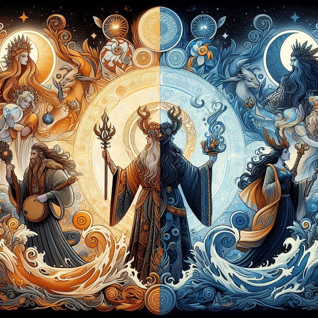 В традиционной магии боги часто не конкретизированы, а символизируют общие энергии природы и жизни. Это могут быть Богиня-Мать как олицетворение интуиции и заботы и Бог-Отец как воплощение силы и воли. Маги и ведьмы часто обращаются к этим архетипам для работы с земными и элементальными силами.