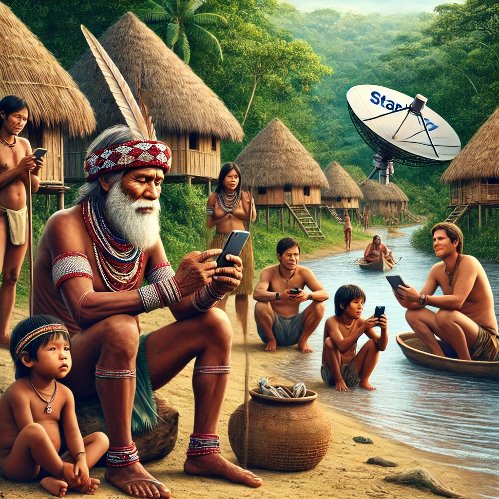 В сентябре 2023 года бразильское племя Марубо, насчитывающее около 2000 человек и проживающее на берегах реки Итуи, получило доступ к высокоскоростному интернету благодаря спутниковой системе Starlink. Это событие кардинально изменило их жизнь, привнеся как положительные, так и отрицательные последствия. Связь с внешним миром: Появилась возможность оперативно обращаться за медицинской помощью в экстренных ситуациях, таких как укусы ядовитых змей. Образование: Молодежь получила доступ к образовательным ресурсам, расширяя свои знания о мире. Злоупотребление контентом: Молодые члены племени начали активно просматривать порнографические материалы, что противоречит традиционным ценностям Марубо, где даже публичные поцелуи считаются табу. Снижение трудовой активности: Увлечение интернетом привело к тому, что молодежь стала меньше участвовать в традиционных занятиях, таких как охота, рыбалка и земледелие. Утрата культурных традиций: Снижение интереса к устной передаче знаний и истории племен