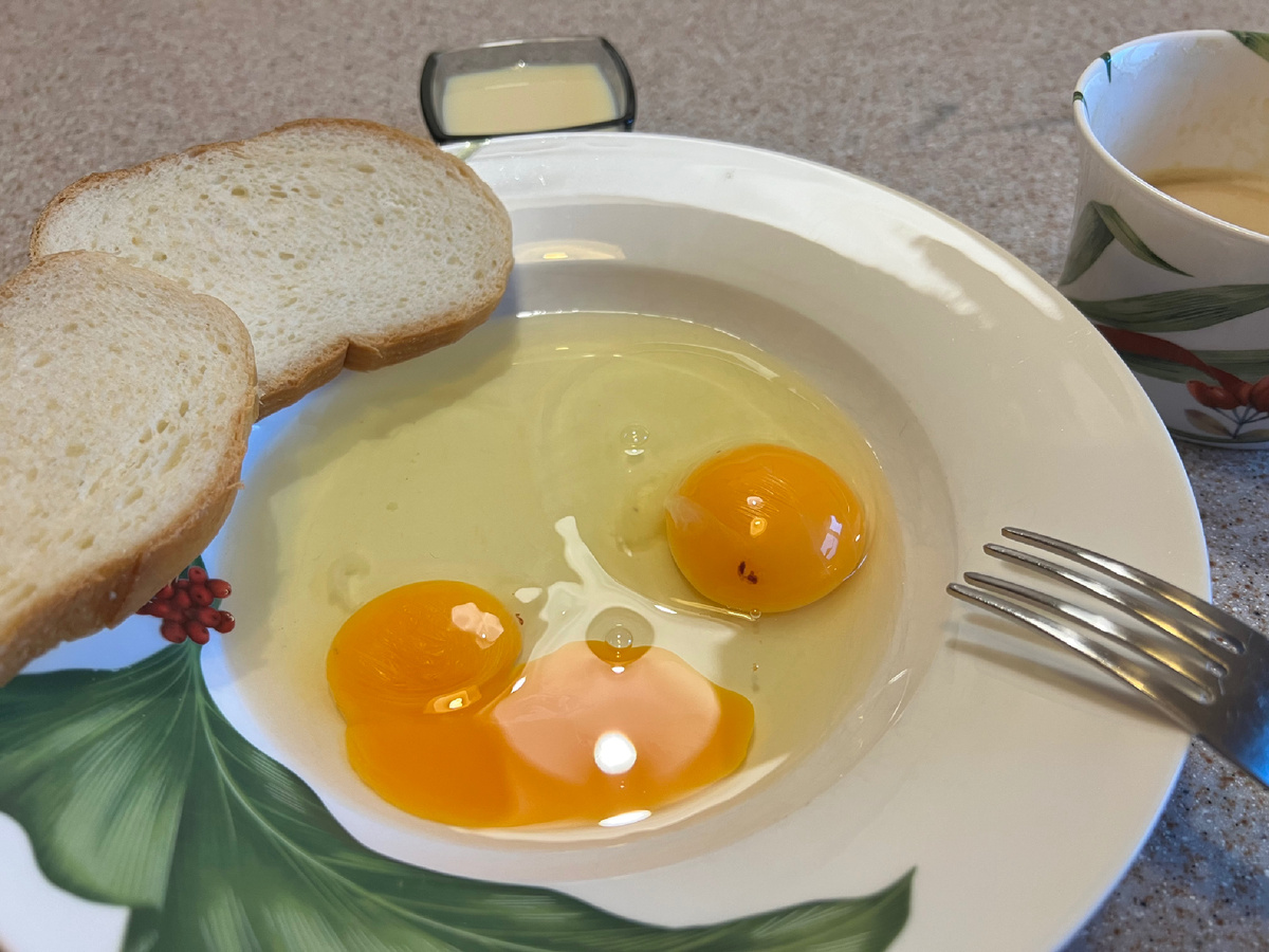 Доброе утро! А вы что любите на завтрак? Лично я кофе (ай яй яй). Остальные мои домочадцы предпочитают более плотный утренний прием пищи. И если икры не завалялось (интересно, она вообще «заваляться» может?), то непременно сладкий. Про мои венгерские корешки все помнят? Так вот, не фезалеком единым. Записывайте. Сегодня будут Bundáskenyér. Сложновато произносится, у нас в семье это бундаши (фух). А вообще - это хлеб в шубе. Шубы у всех разные, тут ни одна норка не пострадает. Так вот. Ингредиенты просты и наверняка есть у многих. Может и шубы есть у многих, а у меня только в бундашах (как жить!). Итак. Два яйца, два куска хлеба и (тадам) сгущенка. Хотя мама говорит, что (куда ты лепишь два яйца) это многовато. Ну а нам нравится, ниче не знаем. Яйца разбиваем, сгущенку добавляем (на глазок и вкус). Перемешиваем и закидываем хлеб. Для пущей сочности, мягкости или как еще сказать, потыкайте вилкой в ваш мякиш. Да так, чтоб он от ужаса пытался развалиться и раствориться в сладких яйцах. И