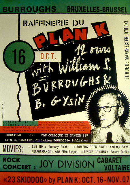 Joy Division получила свою первую возможность выступить за пределами Великобритании 16 октября 1979 года. Это само по себе уже делало концерт для группы особенным, но действительно интересным для Кертиса и его друзей было то, что они будут открывать выступление для Берроуза. Авангардная театральная труппа Plan K, которая специализировалась на интерпретации работ Берроуза, основала пространство для выступлений в бывшем сахарном заводе в Брюсселе, Бельгия. Открытие задумывалось как мультимедийное зрелище. На экране должны были показываться фильмы — среди прочих, «Выступление» Николаса Роуга (с Миком Джаггером в главной роли) и собственные эксперименты Берроуза с Энтони Бэлчем. Театральная труппа Plan K должна была представить «23 Skidoo». Joy Division и Cabaret Voltaire должны были дать «рок» концерты. А Берроуз и Брион Гайсин должны были читать отрывки из своей недавно опубликованной книги «The Third Mind».