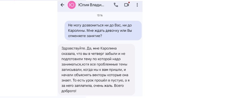 Как же я люблю субботу! Она столько неожиданных ситуаций дарит, причём всегда. Одну я уже описала, она из разрядов курьёзных от ученика "бога", а вот вторая... для меня стала уроком: неприятным, ДИКИМ по сути. Но отрицательный опыт тоже нужен. Наверно. Итак, к сути происходящего (прошу прощения за много букв) Обратились ко мне мама с девочкой-ученицей 9 класса (пришли по объявлению с Авито) Встреча-переговоры. Потратили почти час. Всё это время было лёгкое ощущение дискомфорта (после всего произошедшего понимаю, что надо доверять своим ощущениям). С одной стороны общаемся легко и непринуждённо, а с другой... ну не нравятся мне они. Во-первых, мама и девочка по разному интерпретируют свой запрос. Во-вторых то, что меняют (по их словам) третьего репетитора (за месяц!), В-третьих, то что девочка не знает "чему равна сумма углов треугольника", про теорему Пифагора уже молчу. Но, внимание, нужно объяснить тему "Простейшие задачи в координатах", чтобы получить "4" по геометрии. В-четвёрты