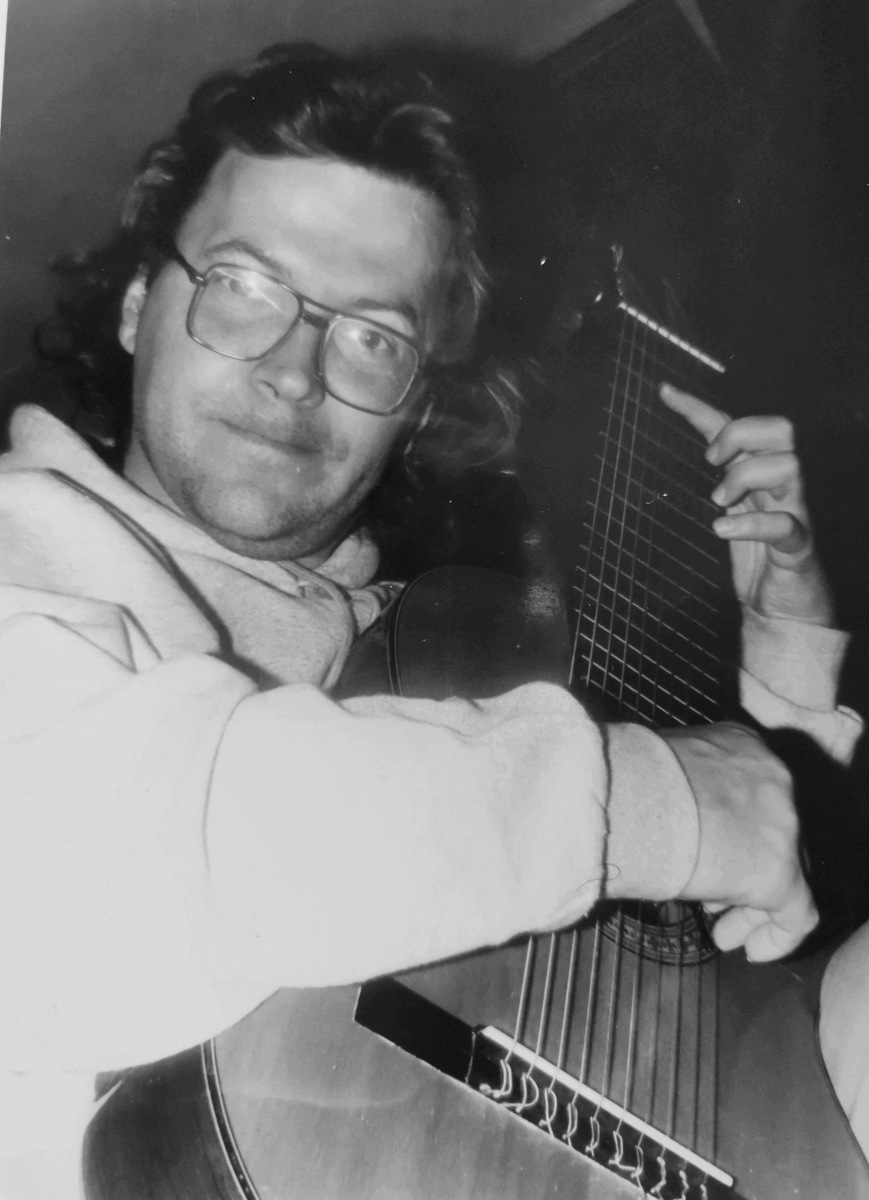 Короче, принёс гитару. У меня был такой уродливый клеёнчатый чехол красного цвета, который застёгивался на здоровенную английскую булавку. Но гитара была неплохая, старая Луначарка, шестиструнная. По тем временам лучшее из отечественного производства (о мастеровом инструменте я тогда и не мечтал). Струны "Fisoma", гэдээровские. Других было не достать. Вечером, перед тем, как лечь спать, я поставил новые басы. Так что звучать должно было хорошо. И вот дошло до физики. На уроке я сидел и внимательно слушал, хотя и мало что понимал. А после Мейнгард Карлович пригласил меня в лаборантскую. Там мы сели напротив друг друга. Скамейки у меня не было, так что я подставил правую ступню под левую, проверил строй и начал играть. Сыграл несколько пьес из тетради, я их дома по памяти ещё раз записал и поучил. Всё по-честному, как договаривались. Когда доиграл, извинился, что больше из тетради сыграть наизусть не могу, только если ноты перед глазами поставить. Тогда прочитаю с листа, как получится. Но физик, похоже, уже всё решил. Вернул мне тетрадь и отпустил домой. Я вздохнул с облегчением, будто экзамен сдал.
