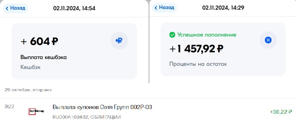 Доброе время суток! Подведем итоги недели с 28.10 по 03.11 За неделю поступили следующие выплаты: ✅Купоны по облигации СэтлГрупп 002Р-03 - 38,22 руб. ✅Процент по вкладу ОзонБанк за октябрь - 1 457,92 руб. ✅Кэшбэк ОзонБанк за октябрь - 604 руб. 📌Приобретение в портфель следующих бумаг: - Облигация Глоракс 001Р-02 - 3 шт - Облигация О КЕЙ 001Р-06 - 4 шт - Облигация Брусника 002Р-02 - 1 шт - Облигация ГК Самолет БО-П15 - 1 шт - Облигация Мосэнерголифт БО-02 - 1 шт - Облигация СэтлГрупп 002Р-03 - 1 шт - Фонд Пассивный доход - 10 лотов - Акция ЭсЭфАй - 1 шт - Акция Европлан - 3 шт Денежный поток за неделю составил 2 100,14 рублей. 🎯На сегодняшний день цель на год по пассивному доходу составляла 69 600 рублей в год, фактическая сумма составляет 199 960 рублей.