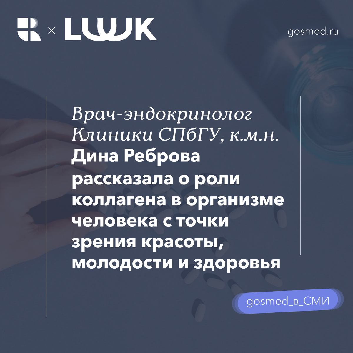 Врач-эндокринолог отделения эндокринной хирургии Клиники высоких медицинских технологий им. Н.И. Пирогова СПбГУ, к.м.н. Дина Реброва рассказала журналистам онлайн-платформы «Luuk» о роли коллагена в организме человека с точки зрения красоты, молодости и здоровья. Дина Владимировна отметила, что белок соединительной ткани коллаген находится в коже, волосах и ногтях, а также в сосудах, костной и хрящевой ткани. Если регулярно восполнять дефицит коллагена при помощи пищи и лекарственных препаратов, то можно предотвратить многие нарушения здоровья — сухость кожи, ломкость ногтей и волос, боли в суставах, хрупкость костей и медленное заживление ран. Кроме того, в статье эксперты разъясняют, как правильно выбрать и принимать коллаген. Полный текст доступен по ссылке>> Клиника высоких медицинских технологий им. Н. И. Пирогова СПбГУ является крупнейшей специализированной Клиникой эндокринной хирургии в России и в мире. Врачи-эндокринологи амбулаторных подразделений обладают самыми современны