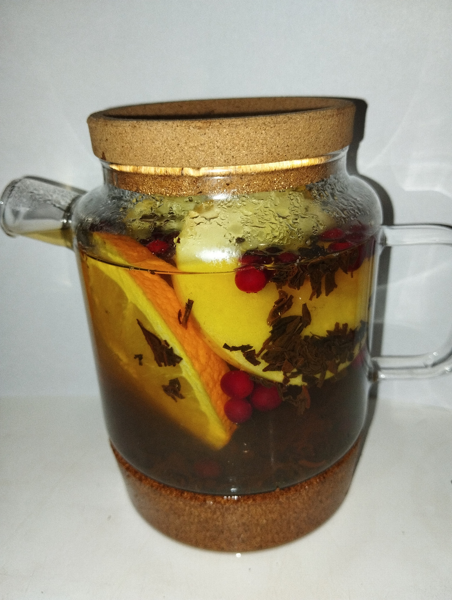 Если в какое то утро вам захочется поднять себе настроение, приготовьте чай с апельсином, яблоком и брусникой и насладитесь его бодрящим вкусом и ароматом! Ничего сложного в этом рецепте нет, да и ингредиенты вполне доступны каждому. Апельсины берите любые: главное, чтобы они были спелыми. Кстати, я настоятельно рекомендую добавлять в такой чай сахар, так как он делает цитрусовые ноты еще более выразительными. А свежие ягоды брусники обладают большой пользой для людей, страдающих от авитаминоза и гастрита. Напиток, в составе которого есть брусничный сок, применяют для терапии простудных заболеваний, гриппа, головных болей. Не болейте, друзья и витаминизируйтесь!!! Возьмите любой крупно листовой чай, который нравится вам. Подготовьте яблоко, бруснику и апельсин. Все соедините и залейте горячим кипятком. Дайте постоять 15 минут. Приятного чаепития и хорошего настроения!!! Подписывайтесь, друзья, поднимаем настроение и готовим легко и не дорого!