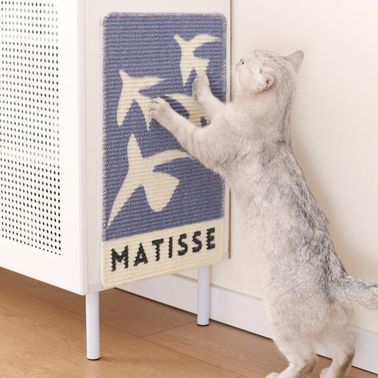 Несколько решений, как органично внедрить кошачьи когтеточки в интерьер: Использовать коврики с интересными принтами. Придать необычную форму самой когтеточке. Комбинировать разные ткани и материалы. Обрамить коврик и включить его в композицию с другими постерами.