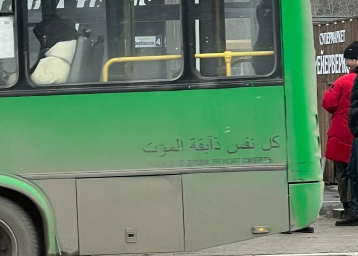 Екатеринбург, утро, всё как обычно: привычный маршрут на работу, вялое залипание в телефон, запах крепкого кофе. И тут — бац! Взгляд мужчины, жителя Екатеринбурга, наткнулся на странное зрелище: на одном из автобусов, курсирующих по городу, красовалась надпись на арабском, а под ней — слова на русском: «Каждая душа вкусит смерть». «Не поверил своим глазам», — вспоминает мужчина, написавший жалобу в полицию. Теперь он уверен: этот автобус больше не для него.