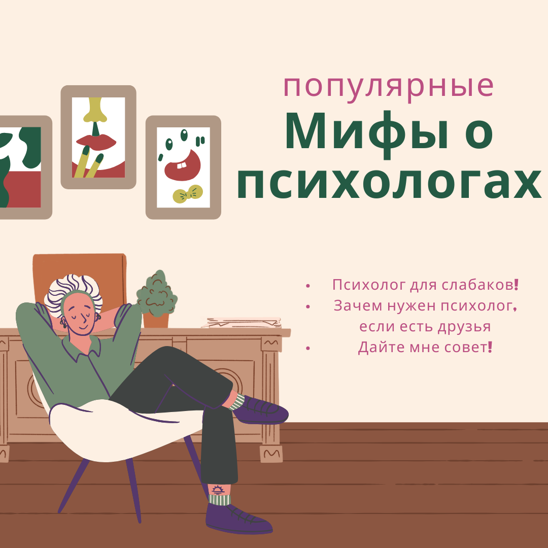 Вокруг каждой профессии витают свои мифы и стереотипы, и Психологов тоже не обошло стороной. Давайте разберем несколько популярных мифов о работе психолога. Миф первый "Психолог для слабаков!" Одним из популярных стереотипов является «К психологу обращаются только слабаки! Можно самому решить свои проблемы». В целом, люди действительно решают возникающие ситуации самостоятельно: пробуют привычные им способы, делятся переживаниями с близкими, просят совета, и даже не редко вполне удачно справляются. Но иногда случаются следующие ситуации: Люди живут в этом мире по своим шаблонам и сценариям. И порой случается так, что эти шаблоны становятся неэффективны: человек пробует что-то предпринимать, но как будто топчется на месте. Слабость - это убегать от своих проблем. Признаться себе, что вы не справляетесь, и обратиться за помощью к специалисту - это нормально. Миф второй "Друзья лучше психолога" Ещё один миф о психологической помощи это «Зачем идти к психологу, если у меня есть друзья?!».