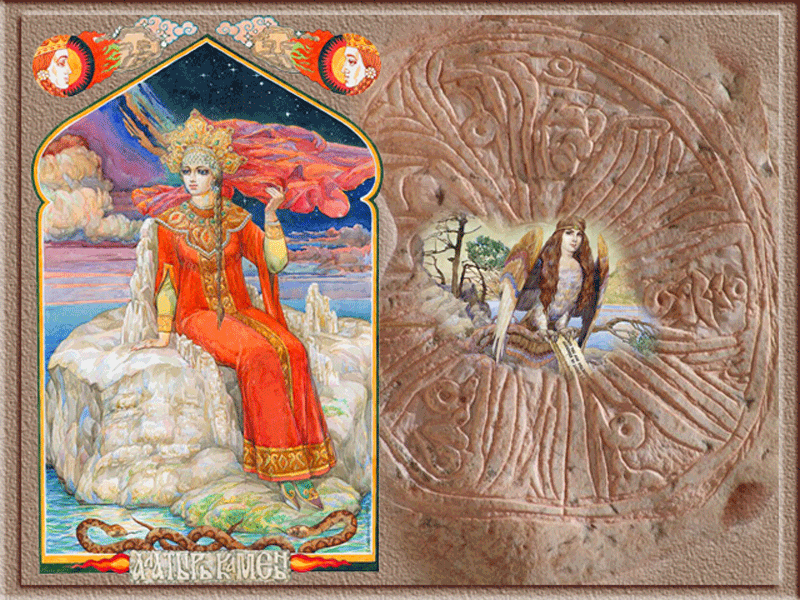 Род родил Седаву-звезду в вышине, а под нею Камень Алатырь. И Алатырем пахтал–сбивал Молоко и из масла родил Землю-Матушку. Как родилася Мать Сыра Земля, так ушла она в бездну тёмную, в Океане она схоронилась.