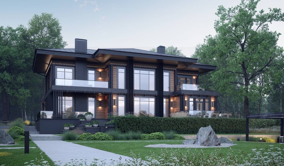 Двухэтажный дом в стиле Райта предназначен для семьи из 4–6 человек. Фасад дома: тёплый бежевый брус гармонирует с серыми архитектурными элементами, создавая атмосферу уюта и природной гармонии. Просторные террасы и балконы: идеальные места для отдыха на свежем воздухе и наслаждения окружающим пейзажем. Интерьер с продуманной эргономикой: холл, уютная гостиная, объединённая кухня-столовая с удобной кладовой, зона СПА с отдельной террасой. Детские комнаты, игровая, кабинет, мастер-спальня с выходом на террасу — всё для удобной и приватной жизни. Узнайте больше по ссылке🔗