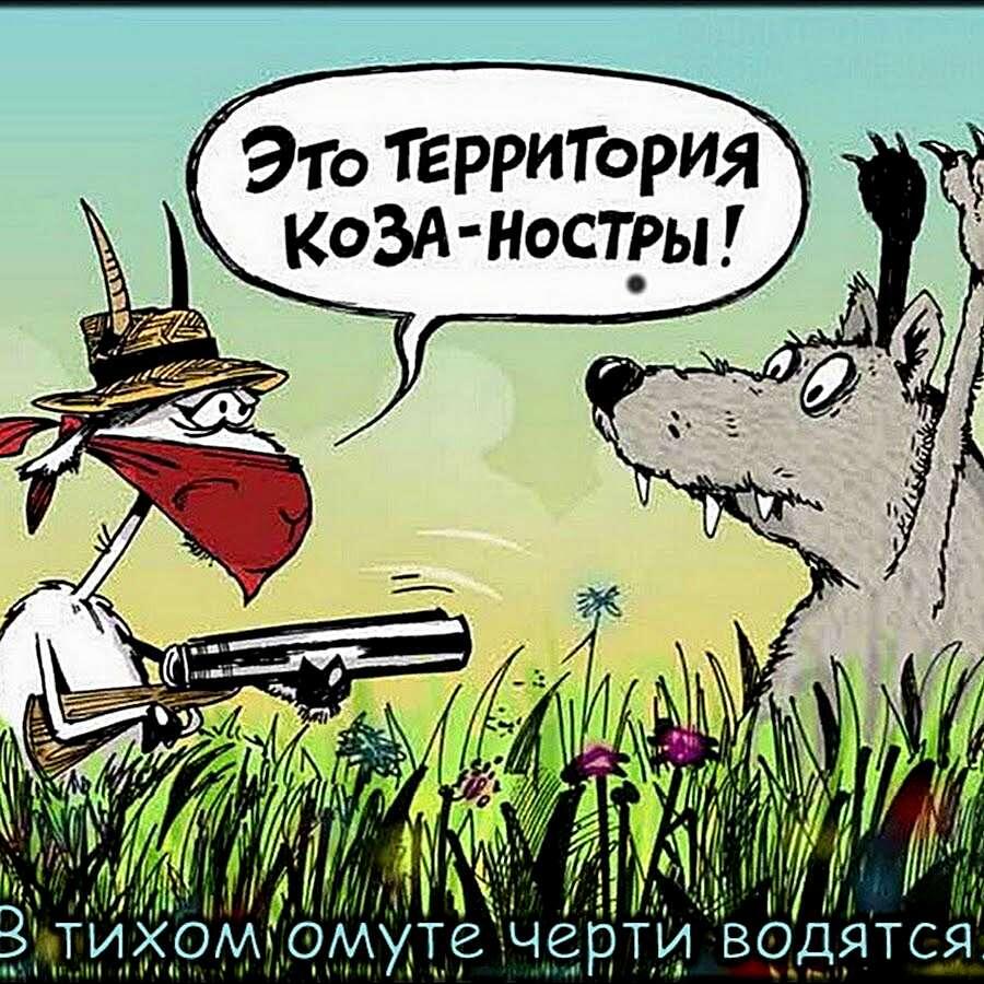 Многие художники любят вдохновляться знакомыми сюжетами и создавать свои, новые версии сказок, уже для взрослых. Сегодня как раз такой случай. Вас ждёт большая подборка юмора и приколов. Карикатуры на эту тему всегда были и будут популярны у зрителей. Ведь все мы с детства любим сказки. Мне очень нравится смотреть такие занятные комиксы, сделанные на новый лад. Особенно, когда персонажи ведут себя непредсказуемо и забавляют читателей. В этот раз вас ждёт сказка "Семеро козлят". Каждый знает её буквально наизусть. И всё-таки, нашим карикатуристам удаётся удивить нестандартными сюжетными поворотами. Давайте глянем, что получилось. Приятного чтения и настроения) Кто сказал, что маленьким храбрецам сложно справится с большим и страшным серым волком? У них вполне может быть большая семья, братство. Звериная банда. «Коза Ностра» (в переводе - «наше дело») - сицилийская преступная организация, итальянская мафия. Состояла из групп, называемых «семьями» и подчинялась «крёстному отцу». Добро