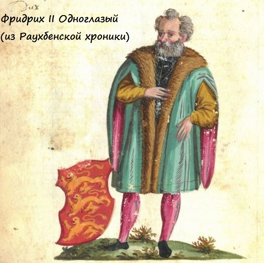 В 1122 г. в семье герцога юго-западной немецкой области Швабия Фридриха Одноглазого в монастыре Вайнгартен родился сын, который, как и его отец, был назван Фридрихом. Фридрих Одноглазый был родным братом короля Германии Конрада III — основателя династии Гогенштауфенов. В то время Священная Римская империя переживала времена очередных смут. Конрад III исполнял функции ее фактического светского правителя, однако из-за упорных разногласий с папским престолом так и не надел официально императорскую корону. Фридрих — сын Фридриха Одноглазого, вырос здоровым, физически сильным и умным аристократом, производившим приятное впечатление на тех, с кем ему доводилось общаться. Его отличали целеустремленность и упорство, нелюбовь к праздности и безделью. Он всегда стремился участвовать в любых трудных и рискованных делах. Старательно он исполнял предписания христианской религии. В то же время при внешнем обаянии Фридрих-младший отличался и весьма крутым по отношению к своим противникам нравом. Всяк
