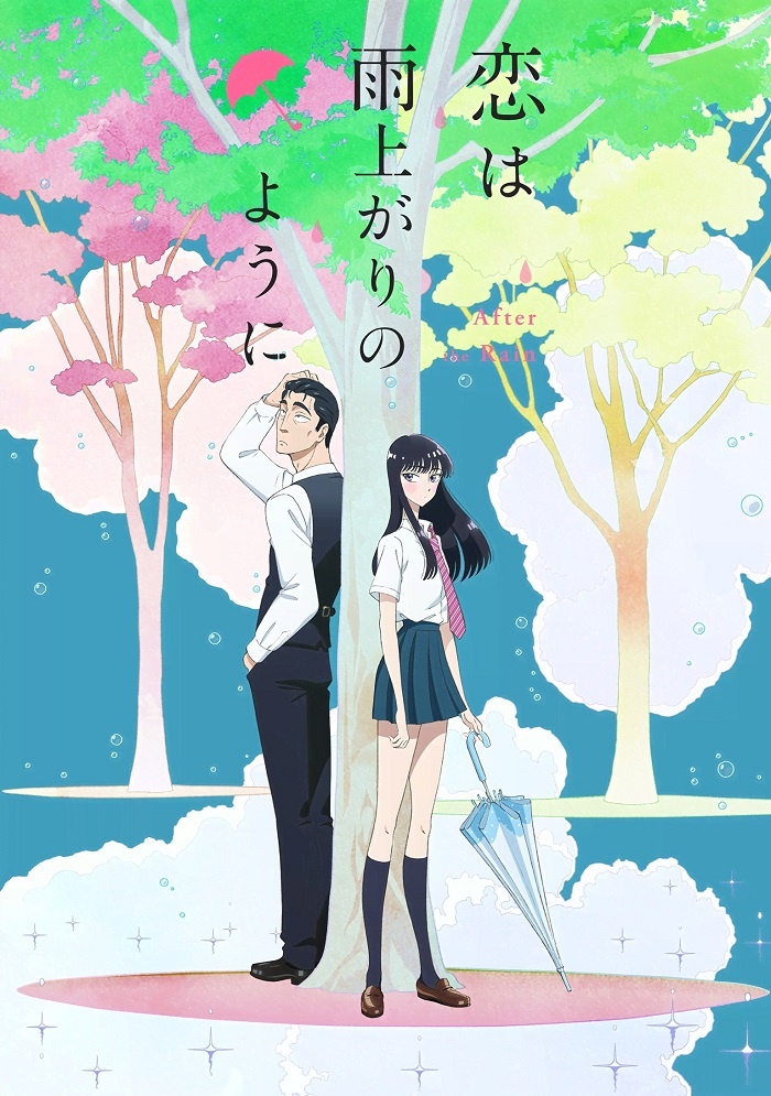 Koi wa Ameagari no You ni. Ученица старшей школы Акира Тачибана — тихая любезная девушка, которая раньше состояла в клубе лёгкой атлетики, но из-за перенесённой травмы потеряла былую форму. Она нашла прибежище в семейном ресторанчике, устроившись туда на подработку. Неожиданно для себя она понимает, что вопреки собственной воле влюбилась в своего начальника Масами Кондо — разведённого мужчину 45 лет, воспитывающего маленького сына.Несмотря на огромную разницу в возрасте, Акира искренне восхищена добрым характером и мягкими манерами Кондо, которого другие работники воспринимают как бесхарактерную личность. Мало-помалу они сближаются и начинают понимать друг друга. Хотя Акира не может объяснить, по каким именно причинам её привлек собственный начальник, она убеждена, что для настоящей любви не требуются причины и объяснения. Одним дождливым днём она решает наконец признаться Кондо в своих чувствах... Какова же будет его реакция? И что он ответит на это? Приятная рисовка. Неплохо раскрыт