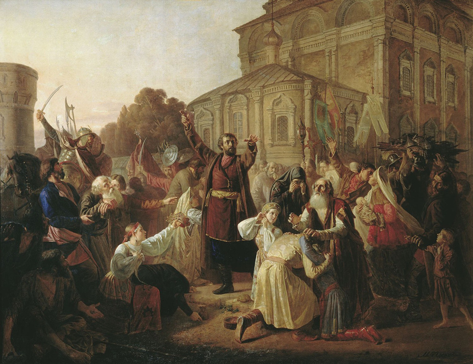 Смуту на Руси породил Лжедмитрий первый. Пожарский давал присягу Лжедмитрию.