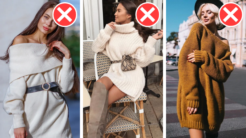 ❌ 12. Платье-свитер крупной вязки