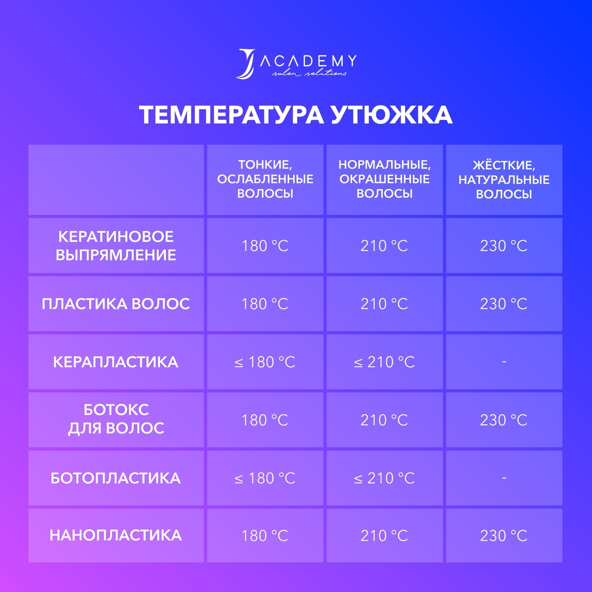 Сверху вы можете видеть ориентировочный подбор температуры и количество проводов утюжком. • Кертиновое выпрямление волос/Пластика/Керапластика.