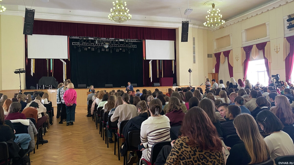 Сегодня в первой половине дня ректор ТОГУ встретился со студентами пединститута. Актовый зал был полон, и большинство собравшихся были против переезда. Они были уверены, что веских причин для этого нет, однако Юрий Марфин отвечал, что это не так.
