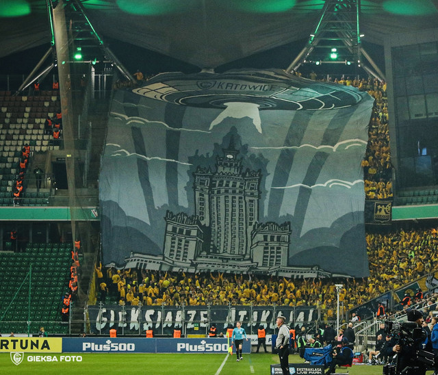 В качестве перфоманса на этой встрече болельщики клуба из Катовице презентовали баннер с подписью «ГиеКСовцы атакуют!», на котором НЛО с изображением логотипа клуба на борту завис над зданием, которое внешне очень напоминало что-то среднее между сталинской высоткой и главным зданием МГУ. На самом деле это дворец культуры и науки в Варшаве – здание было подарено Польше Советским Союзом в 1955 году, хотя сама постройка была возведена на общие деньги.