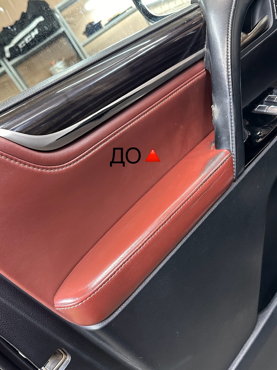 Lexus LX 570 Убрали заматованность с кузова и вернули заводской блеск. Услуга полировки с нанесением керамики. Притемнили всю оптику тонирующей полиуретановой плёнкой. На водительской двери перетянули ручку в кожу под оригинал, и отреставрировали подлокотник. На водительском сидении так же произвели реставрацию кожаных элементов и заменили один порванный элемент на верхней боковой поддержке. Перетянули руль в натуральную кожу. Сделали химчистку салона. Сделали ремонт вмятины с сохранением заводского лака.