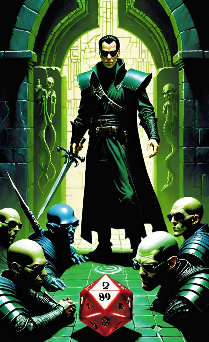 Зато Матрица - это шедевр братьев Вачовски, да уже сестёр, я знаю. Культовое кино, которое видели все, последняя часть не в счет. А что если ДнД это своего рода Матрица? Гейм мастер, человек, который ведет игру погружая игроков в удивительный или не очень мир - Морфеус, что протягивает две таблетки с дилеммой "знать" или "быть в неведении"? Нео делает свой выбор и просыпается по ту сторону. На руке мастера же два кубика, один он дает тебе, а второй кидает сам. И цифра решает, кто остается в неведении или же, кто постигает истину. Например, если бросок на лор. Нет не ухо горло нос, в мире ДнД. Лор (англ. Lore - знание) - это история мира, в котором происходят события, участниками которых вы являетесь и которые же создаете. Игра в ДнД