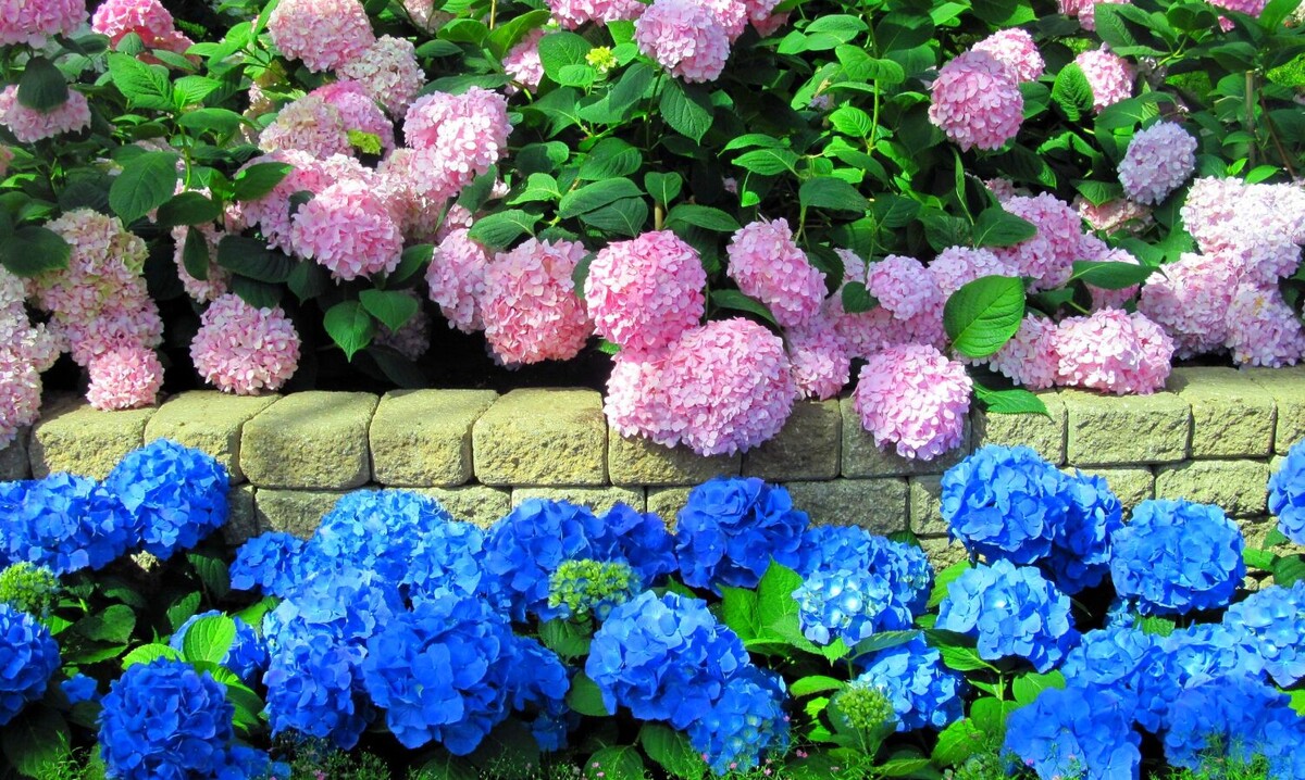 Гортензию крупнолистную очень любят высаживать в парках и садах в Европе, но она уже довольно давно завоёвывает и российские сады. Правда, до сих пор ходят споры, зимует или не зимует у нас этот вид, можно ли подкрасить специальными удобрениями соцветия или это сделать сложно и так далее. Если вы влюбились в гортензию крупнолистную, то не стоит отказываться от неё только из-за того, что вы боитесь, что она замёрзнет. Уже многие цветоводы с успехом её выращивают. Голубой или розовый цвет у некоторых сортов гортензии крупнолистной связан с наличием или отсутствием в почве солей алюминия. Если их достаточно, то цветки голубеют, а если этих солей не хватает, то цветки будут розовыми. Вы можете купить Средство для окраски гортензий Робин Грин, которое поможет изменить окраску цветка. Отдельно скажем об обрезке. В средней полосе России, где всегда велик риск потерять побеги как зимой при морозе, так и весной при заморозках, обрезкой можно пренебречь. На вы можете поступить следующим образом.