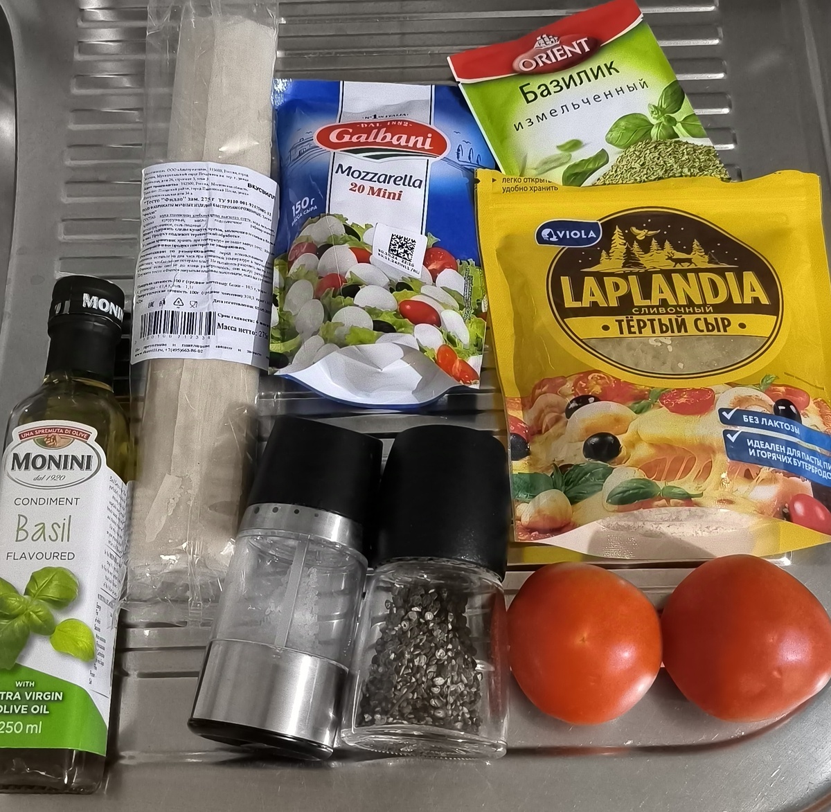 Этот пирог выглядит очень празднично, а готовится так легко, что может стать будничным рецептом. С начинками можно смело экспериментировать. А я сегодня готовила не сладкий, закусочный вариант этого замечательного пирога. Ингредиенты: - тесто фило 9 листов - помидор 3-5 штук - соль, сушеный базилик и черный молотый перец по вкусу - моцарелла 100 грамм - сыр твердый 50 грамм - растительное масло 1 столовая ложка 6 листов теста равномерно распределяем на противнее застеленным бумагой для выпечки. С моцареллы сливаем жидкость. Твердый сыр натираем на терке. Помидоры тщательно моем, удаляем плодоножку и нарезаем тонкими кольцами. Выкладываем на тесто слой помидор. Добавляем соль, перец и базилик. Выкладываем моцареллу. Равномерно посыпаем тертым сыром. Закрываем начинку З-мя листами теста фило. И скрепляем края, собирая их и формируя круг. Сверху смазываем маслом. По желанию посыпаем кунжутом. Отправляем в разогретую до 180 градусов духовку на 20-25 минут.