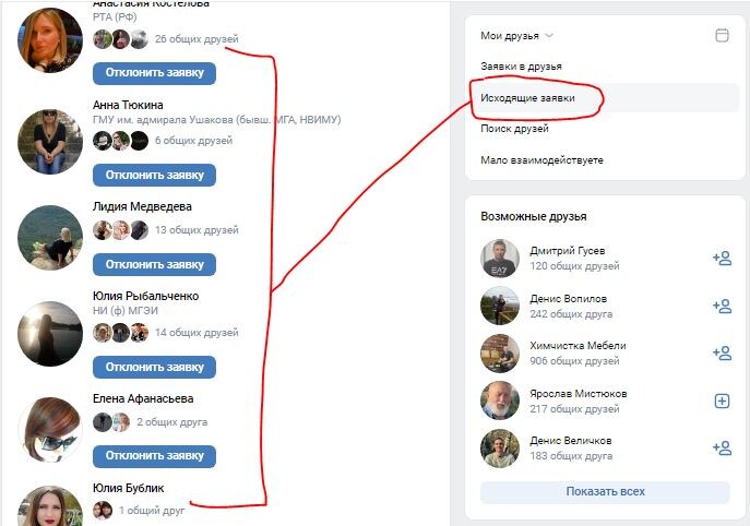 Привет, любители добавлять друзей Вконтакте ) Уже больше года я ежедневно добавляю друзей Вконтакте. Мне это нужно по работе (целевая аудитория). За это время регулярно копится целая куча моих исходящих (непринятых) заявок в друзья другим людям. Чтобы не кликать руками много раз, а сразу одним махом отменить все эти непринятые заявки, я пользовался специальным скриптом. Его несложно найти на просторах интернета. Однако в ноябре 2024 Вконтакте что-то поменялось, и скрипт перестал работать. Пришлось обращаться к программистам, за помощью. В итоге появился новый РАБОЧИЙ скрипт, который сегодня помог мне отписаться от 1700 исходщих заявок за 10 секунд. Итак: 1. Переходим Вконтакте на пункт на "исходящие заявки в друзья"