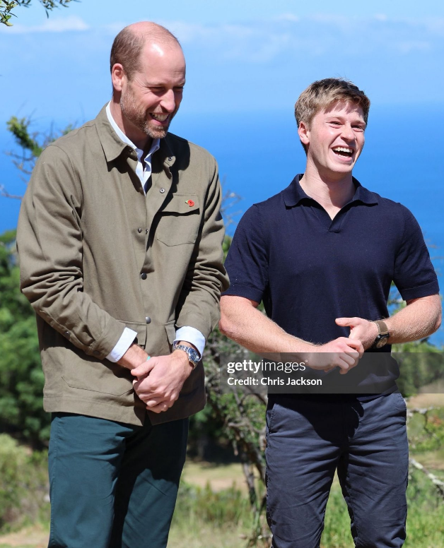 Утром второго дня принц Уэльский и Роберт Ирвин, всемирный посол премии Earthshot Prize, отправились с визитом на Сигнал-Хилл в Кейптауне, чтобы встретиться с рейнджерами и специалистами по охране природы и обсудить важность биоразнообразия. *** Signal Hill/Сигнальная гора - небольшая гора высотой 350 м в Кейптауне, расположенная возле Столовой горы и Львиной головы. Она является частью национального парка Столовая гора. *** С вершины горы открывается прекрасный вид на Кейптаун и окрестности. Принц Уильям поговорил с несколькими рейнджерами. И молодыми волонтерами. Во время своего визита на Сигнальную гору, принц Уэльский также пообщался с Меган Тэплин, управляющей национальным парком Столовая гора. И познакомился с собакой Лией, которая помогает охранять Сигнальную гору. Сейчас в ЮАР стоит поздняя весна - самое красивое время года. На этот раз принц Уэльский надел мужскую рубашку песочного цвета от Rapanui. Напомним, на протяжении всего своего пребывания в Кейптауне принц Уильям бу