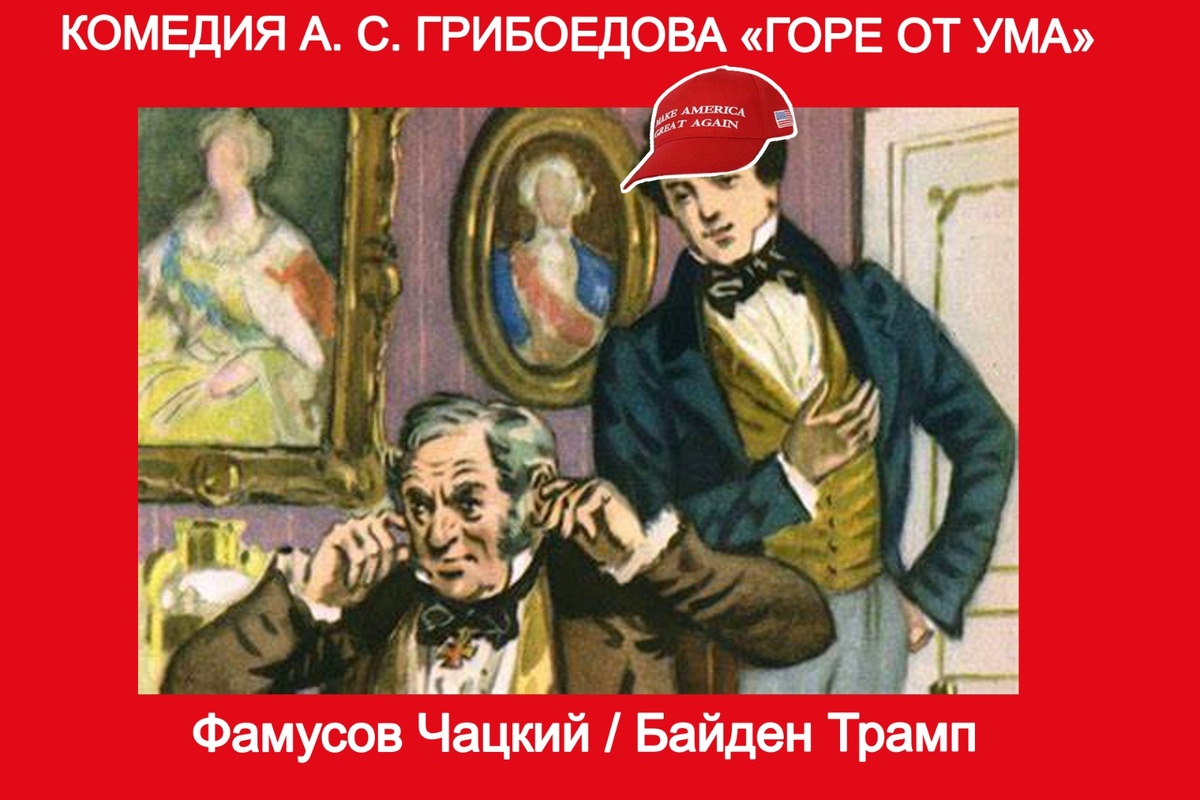 Всем, привет! на каникулах задали учить отрывок из "Горе от ума" Грибоедова А.С., и написать сочинение. Из каждого утюга рассказывают о предстоящих выборах в США. В голове всё смешалось и получился такой каламбур: всем, пока. До Новогодних каникул почти два месяца..