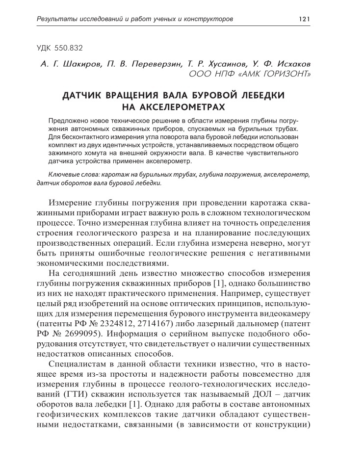 ДАТЧИК ВРАЩЕНИЯ ВАЛА БУРОВОЙ ЛЕБЕДКИ НА АКСЕЛЕРОМЕТРАХ