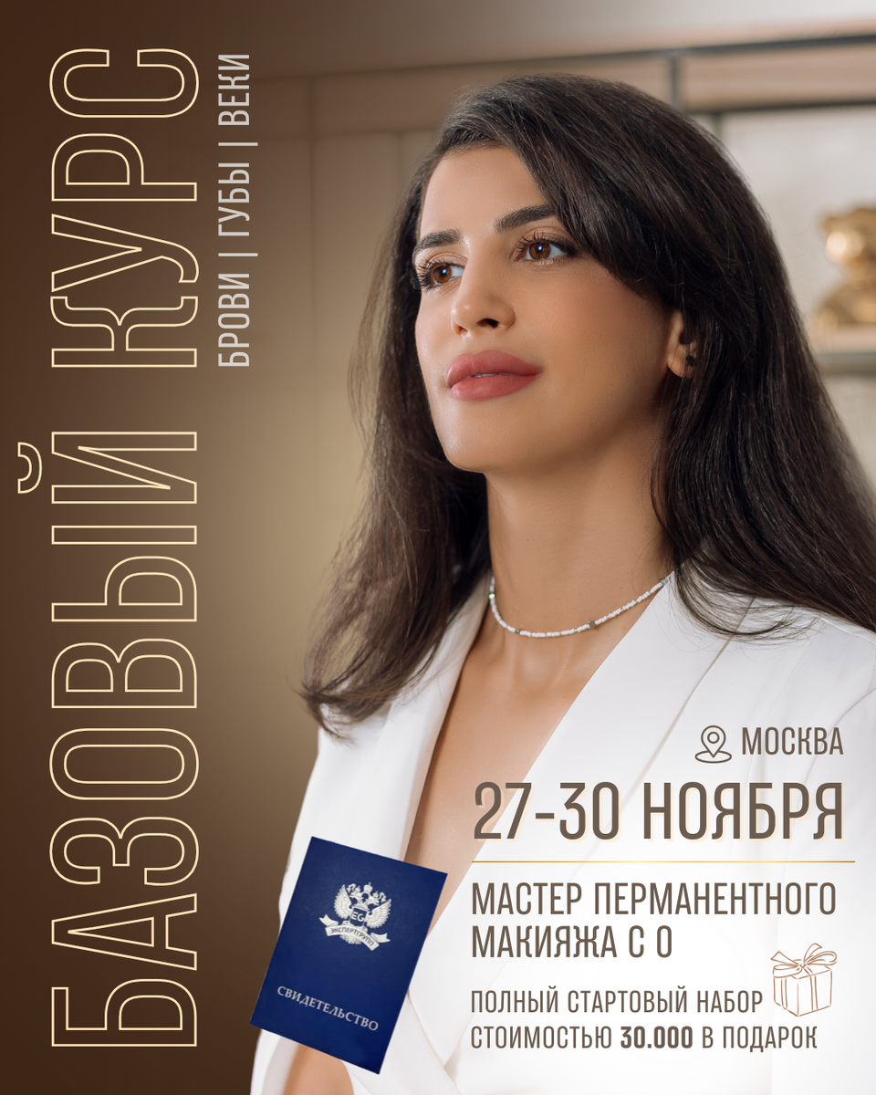 27 ноября стартует обновлённый Базовый курс «Мастер перманентного макияжа с 0», после которого вам точно не придётся переучиваться! - 1 день – полное погружение в профессию: теория, основы техник, постановка руки, тренировка на искусственной коже - 2-4 дни – интенсивная практика на искусственной коже, демонстрация от тренера-преподавателя, самостоятельная практика на моделях. 🔹 Строение кожи и работа с разными типами 🔹 Колористика и пигментология 🔹 Разбор пигментов и особенности работы с разными видами 🔹 Конфигурация игл и оборудования 🔹 Построение эскизов и др. 🔹 Постановка руки и много практики 1. Как находить клиентов? 2. Секреты создания продающих фотографий и программы для обработки 3. Психология общения с клиентами ✅ Свидетельство государственного образца (квалификация «Косметик 4 разряда») ✅ Именной сертификат о прохождении обучения по трем зонам ✅ Методическое пособие ✅ Бессрочный чат поддержки в Telegram 🎁 При полной оплате курса – ПОДАРОК: стартовый набор стоимостью 3