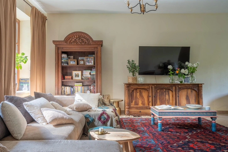 Сегодня идем в гости в уникальный дом, который своими руками превратила в настоящее произведение искусства PR-специалист в сфере культуры Ксения Маренникова. Всего за два месяца она вдохнула жизнь в почти заброшенное здание, сделав из него современное и стильное жилье для большой семьи. Дом, построенный иностранным архитектором и окруженный природой подмосковных лесов, обрёл новую судьбу, а вместе с ней — и теплоту настоящего семейного очага. Дом этот, стоящий в деревне Ларево, притягивает своей атмосферой: настоящая средиземноморская вилла посреди русских лесов. Оказалось, что Ксения с семьёй впервые оказались здесь случайно, сняв дом для летнего отдыха. Лесные прогулки, велосипедные маршруты до пляжа и удивительное соседство создали ощущение принадлежности к этому месту. Тут-то и случилась судьбоносная встреча с хозяйкой трёхэтажного дома Валентиной Александровной, которая в итоге продала семье ведро ягод и... вдохновила их на покупку особняка. Внешне дом выглядел запущенным: трещины