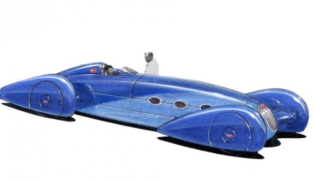 В прошлом году, изучая изображения Bugatti Type 59 на различных веб-сайтах в Интернете, я наткнулся на очень некачественное, но интригующее изображение рисунка, который приписывается Жану Бугатти. На нем был показан вид сбоку и эскизы автомобиля-рекордсмена наземной скорости, который, судя по всему, имел три двигателя в обтекаемом кузове. Я ничего не знал о предполагаемом французском конкуренте Auto Union, но подумал, что было бы интересно представить, как мог бы выглядеть этот замечательный проект.