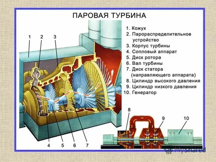 Мы встретили незнакомое слово "думмис". Рассказывая о турбинах, мы дали несколько упрощенное описание. В реальности, при воздействии пара на ротор турбины, возникает осевая сила. Думмис представляет собой разгрузочный поршень на валу турбины. В него подается пар и он воздействует на вал турбины в направлении противоположном осевому усилию от рабочих колес. (надеюсь объяснил понятно, потому, как не знаю, как проще объяснить). В общем, он используется для уравновешивания осевой составляющей давления рабочей среды, что способствует увеличению надежности и долговечности турбины. Устройство требует достаточно высокой точности изготовления, потому его покупали в готовом виде. Роторные колеса тоже поставлялись в готовом виде.