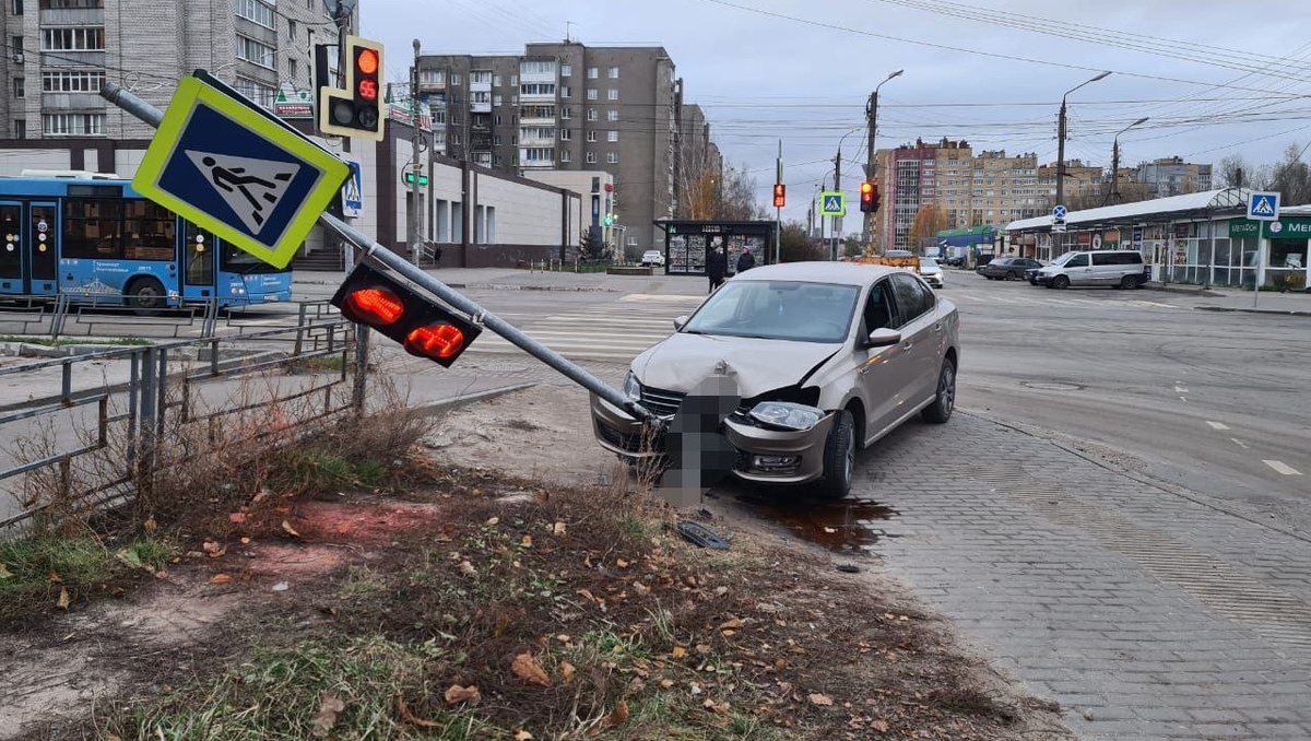 В Твери пьяная женщина спешила в кафе и снесла на автомобиле светофор