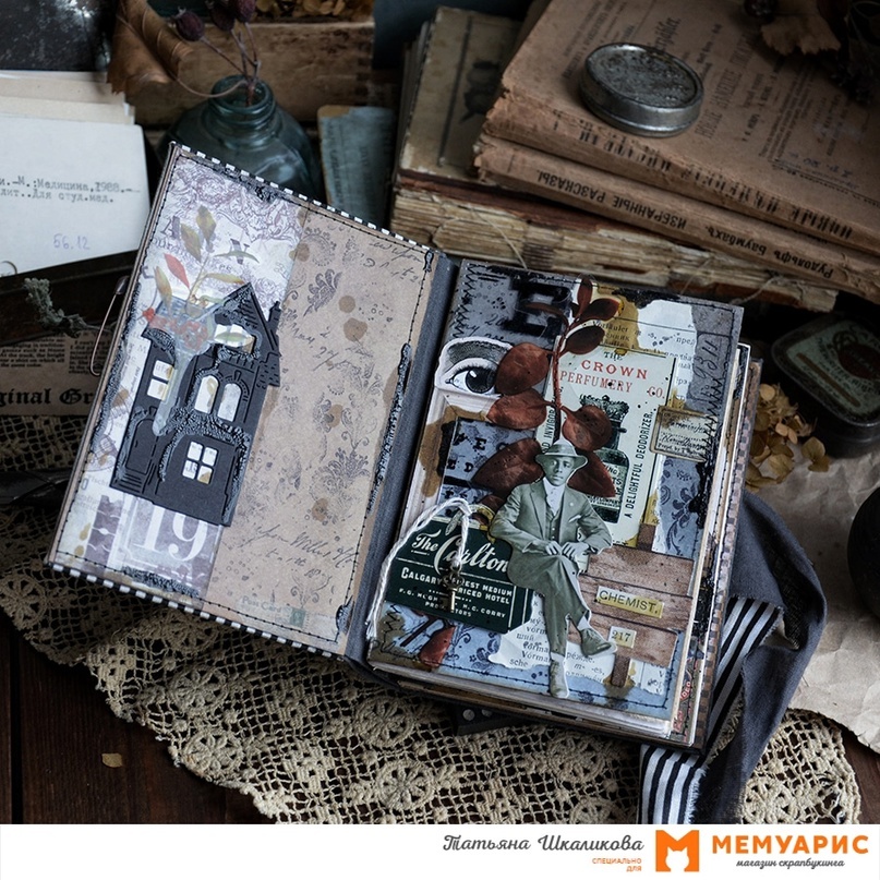 В предвкушении жутких праздников создавать не менее жуткий вещицы. И все по нашему заданию «Страшные сказки». Сочинять страшные истории, рисовать страшилки, а потом записывать это все в жуткие блокноты. Привет, друзья! У меня очень много вдохновения на эту тему : в книгах, музыке, кино. Очень впечатлило творчество группы Король и Шут. Мне кажется я взяла отовсюду по чуть-чуть. Моя жуткая история про странного доктора. Лечит или калечит - это не сразу понятно, да и в каких целях он это делает тоже не совсем ясно. Все невероятно странно и это пугает! Я использовала некоторые фоновые стороны листов из коллекции «Осень-это красиво» от Scrapodelie, совмещенные с принтами от DreamLight Studio. Фоны я сильно дорабатывала различными средствами и техниками: штампинг, тонировка, набрызг. Использовала доступные красочные средства в виде алкогольных чернил, кракелюра, чернил. У меня на фоне черных дамаск, который можно сделать не только штампом, но и при помощи трафарета «Дамаск маленький» от Katr