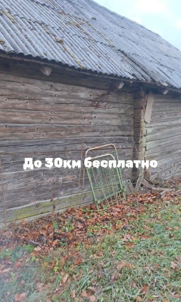 В TikTok опубликовали ролик, в котором предложили бесплатно доставить деревянный дом. Правда, такую услугу пообещали только тем, кто находится на расстоянии не больше 30 км от постройки. Читайте также: "Накинули 90 рублей" - Белоруска возмутилась в TikTok ценой на штаны в Zara. Комментаторы ответили «Последний раз снимаю. Находимся в Дзержинском районе, [деревня] Павлюти. Кому надо, если рядом здесь кто-то, в 20:30 отсюда за бесплатно привезут бревна», — сказал на ролике автор (опубликовали его в первой половине дня 5 ноября). Он уточнил, что доставка на расстояние больше 30 км возможна, но надо «договариваться». «Поэтому начнем разбор через пару часов. Думайте и оперативно оставляйте номер», — добавил мужчина. ... Продолжение читайте тут. (Или тут.) Читайте также: "Извините, это не шутка?" — Белоруска похвасталась в TikTok покупкой дома за 40 рублей. Комментаторы не оценили