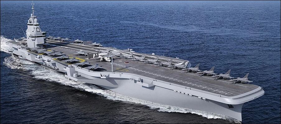 Атомный авианосец водоизмещением 75 000 тонн будет сдан в эксплуатацию в конце 2030-х годов (!). MN обошел обычные надоевшие аргументы о том, что авианосцы устарели, слишком дороги и т. д., и добился политической поддержки и одобрения этого гигантского проекта. Бюджет на проектирование и строительство официально составляет 6 млрд евро, хотя большинство экспертов признает, что 8 млрд евро или больше — это реалистично.