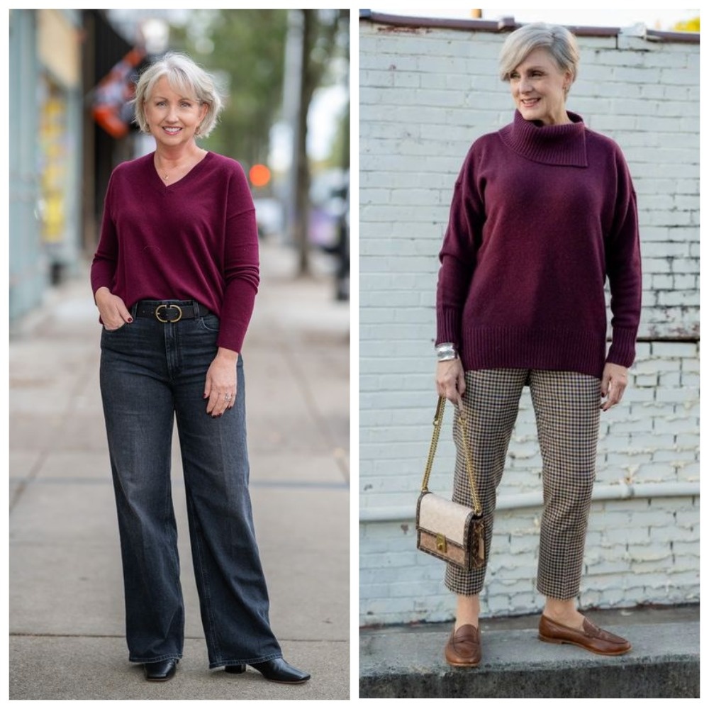 Но с возрастом вся сила бордового цвета оборачивается против нас. Он начинает ассоциироваться с возрастом, солидностью и заметно старит женщин. Особенно, если на лице есть морщинки, птоз и тёмные круги под глазами.
