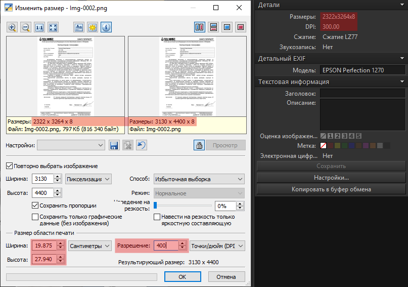 DPI изображения в Zoner Photo Studio
