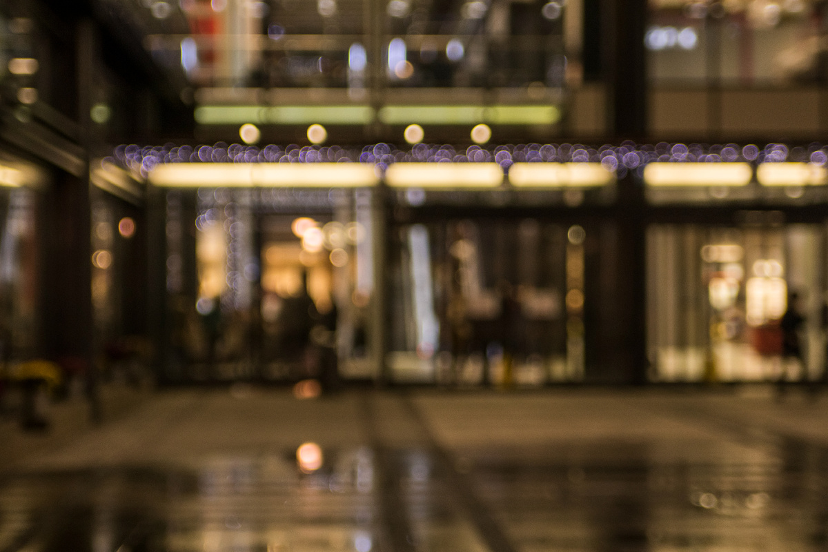 В центре города звезд не видно. Все вокруг залито светом витрин, фонарей и рекламы. В открытом летнем кафе полно народу. Алиса и Мак стоят за столиком и прилежно жуют. В витрине магазина напротив выставлены работающие телевизоры. "Спокойной ночи, малыши" показывают. Хрюша собрался мультик про Шапокляк смотреть.