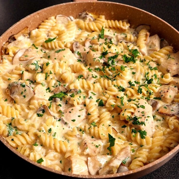 Когда хочется чего-то вкусного и сытного, паста с курицей в сливочном соусе — идеальный выбор. Это блюдо готовится просто, а насыщенный сливочный соус и нежные кусочки курицы превращают обычный ужин в настоящее наслаждение. Подавайте с бокалом белого вина, и ваш вечер станет особенным. Давайте разберемся, как приготовить это блюдо шаг за шагом. Ингредиенты: - 300 г пасты (подойдут тальятелле, фетуччине или пенне) - 400 г куриного филе - 200 мл сливок (жирность 20-30%) - 2 ст. л. сливочного масла - 1 луковица - 2-3 зубчика чеснока - 50 г тёртого сыра пармезан - Соль, перец по вкусу - Свежая петрушка или базилик для украшения Способ приготовления: 1. Подготовка пасты Отварите пасту в подсоленной воде до состояния аль денте. Обычно это занимает на пару минут меньше, чем указано на упаковке. Затем откиньте пасту на дуршлаг, сохранив немного воды от варки (около 1/2 стакана). 2. Приготовление курицы Нарежьте куриное филе небольшими кубиками, приправьте солью и перцем. В глубок