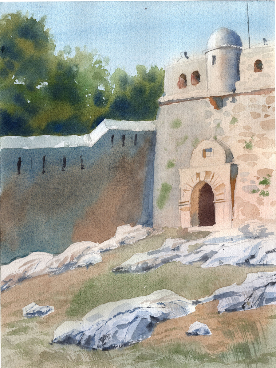Вместо того, чтобы осваивать большой формат, как я и собирался, малодушно рисую на остатках листов А3. И оправдание уже придумал: всё равно до пленэров далеко, а бумага осталась - не выбрасывать же. А с картинкой ниже случилась небольшая история. Несколько лет назад я собирался рисовать этот сюжет с натуры, но буквально перед тем, как приступить уронил в воду свой планшет, причём в таком месте, откуда достать его было уже невозможно. Так и уплыл планшет в море, дальше я рисовал на разделочной доске из номера гостиницы (не шутка). Интересно, что подумали те, кто нашёл планшет в воде? Для чего нужна пластмассовая пластинка с какой-то дырой в верхней части?
