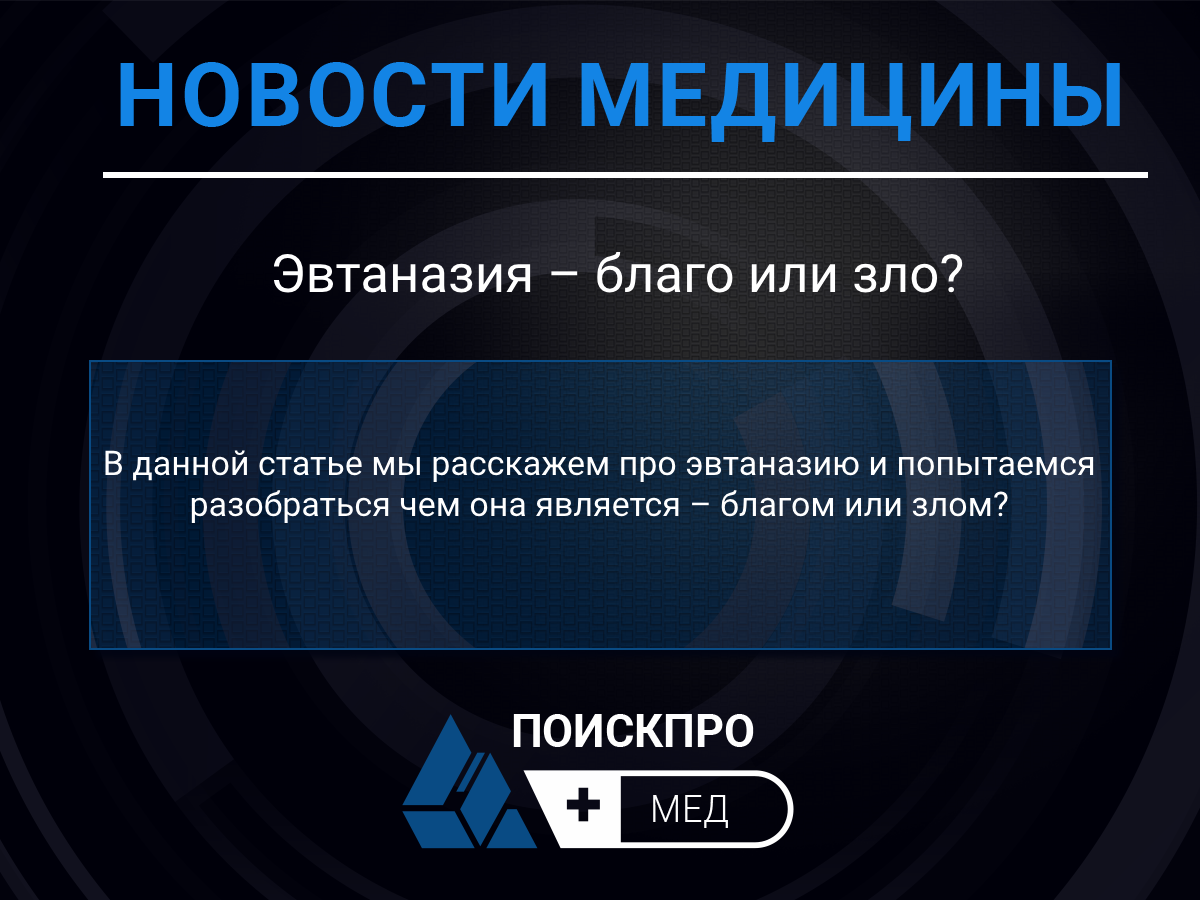 Вы находитесь на канале для врачей, приглашаем Вас обсудить горячие новости, проблемы и сенсации в сфере медицины! На нашем канале каждую неделю выходят новые статьи, подписывайтесь, задавайте вопросы и делитесь своим мнением в комментариях! В данной статье мы расскажем про эвтаназию и попытаемся разобраться чем она является – благом или злом? Приятного чтения! Впервые термин «эвтаназия» употреблён Фрэнсисом Бэконом в XVI веке для определения «лёгкой смерти». Эвтаназия – прекращение жизни человека, страдающего неизлечимым заболеванием, испытывающего невыносимые страдания. Различают также добровольную и недобровольную эвтаназию. Первая осуществляется по просьбе больного, вторая - по решению родственников или опекунов пациента, находящегося в бессознательном состоянии. Хотим обратить Ваше внимание на то, что в России любая эвтаназия является преступлением и в соответствии с частью 1 статьи 105 Уголовного кодекса РФ квалифицируется как убийство. Однако, в связи со сложившийся ситуацией в